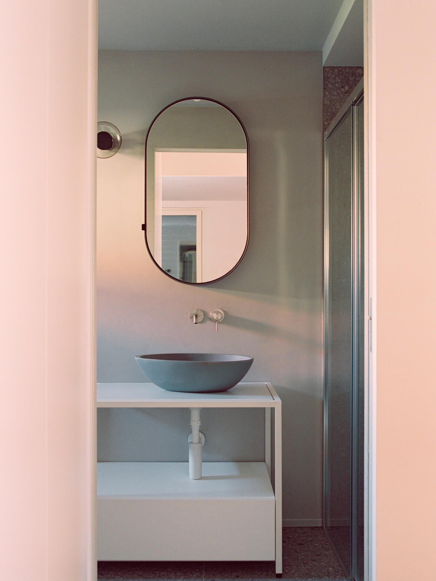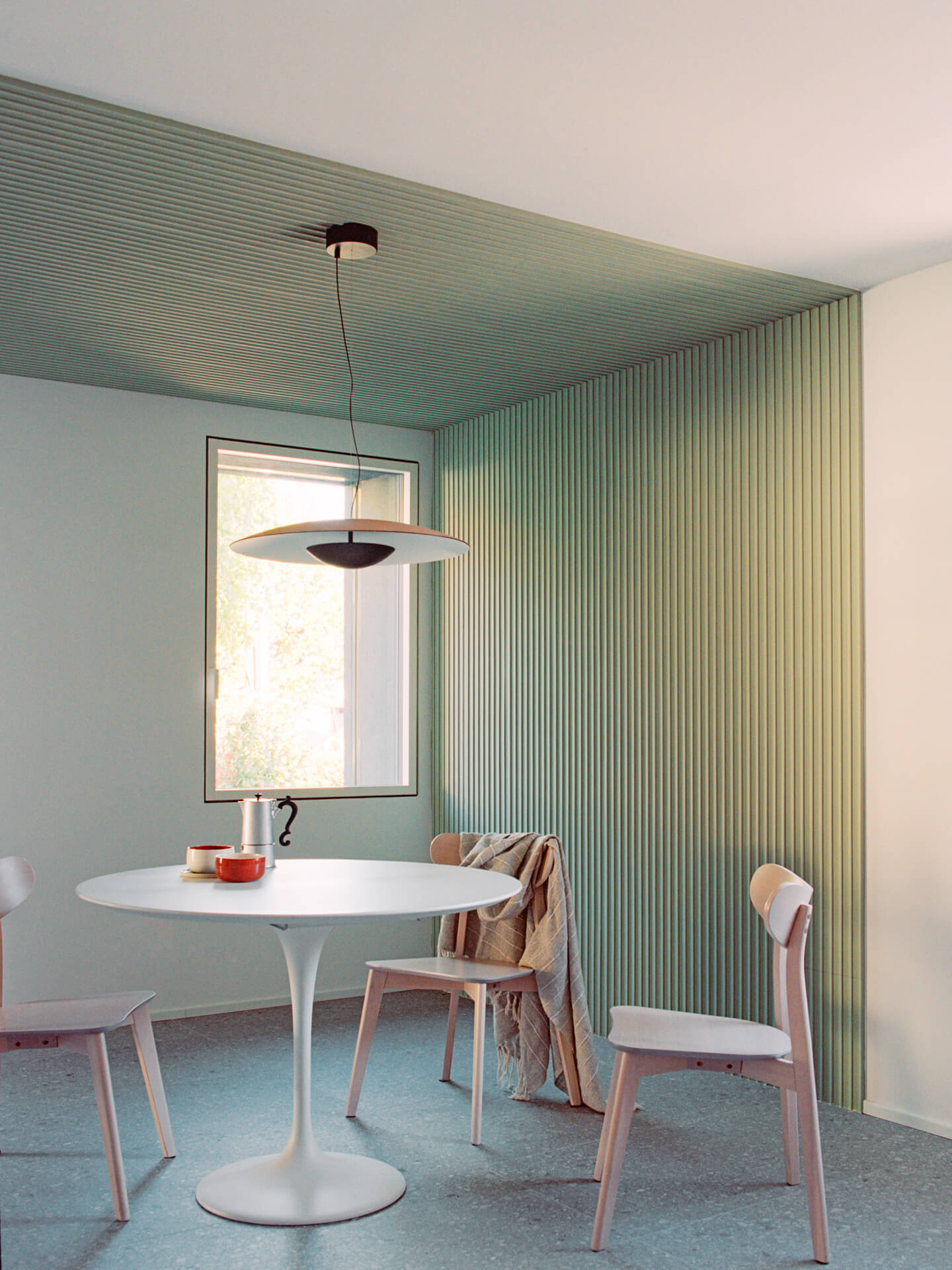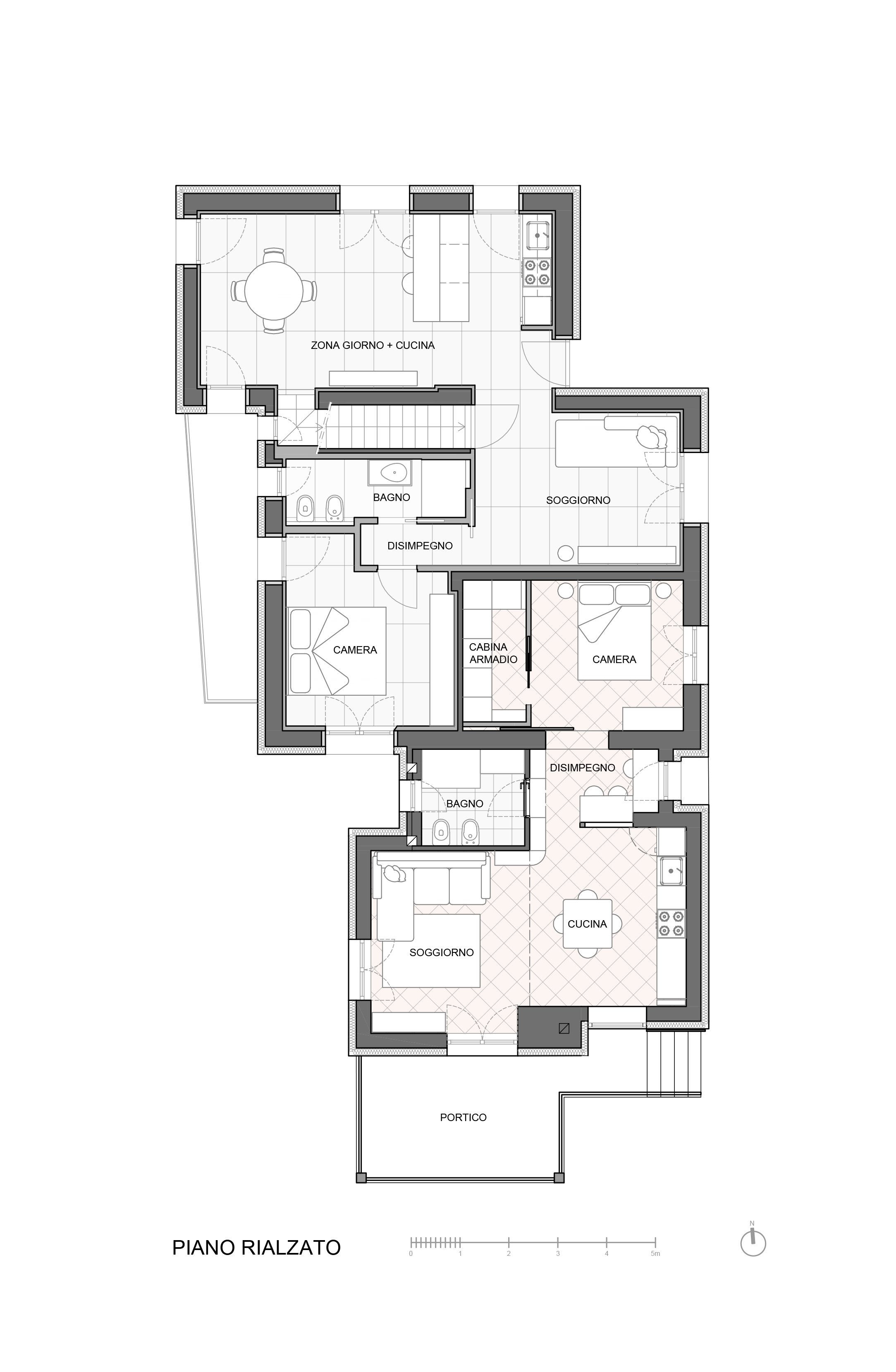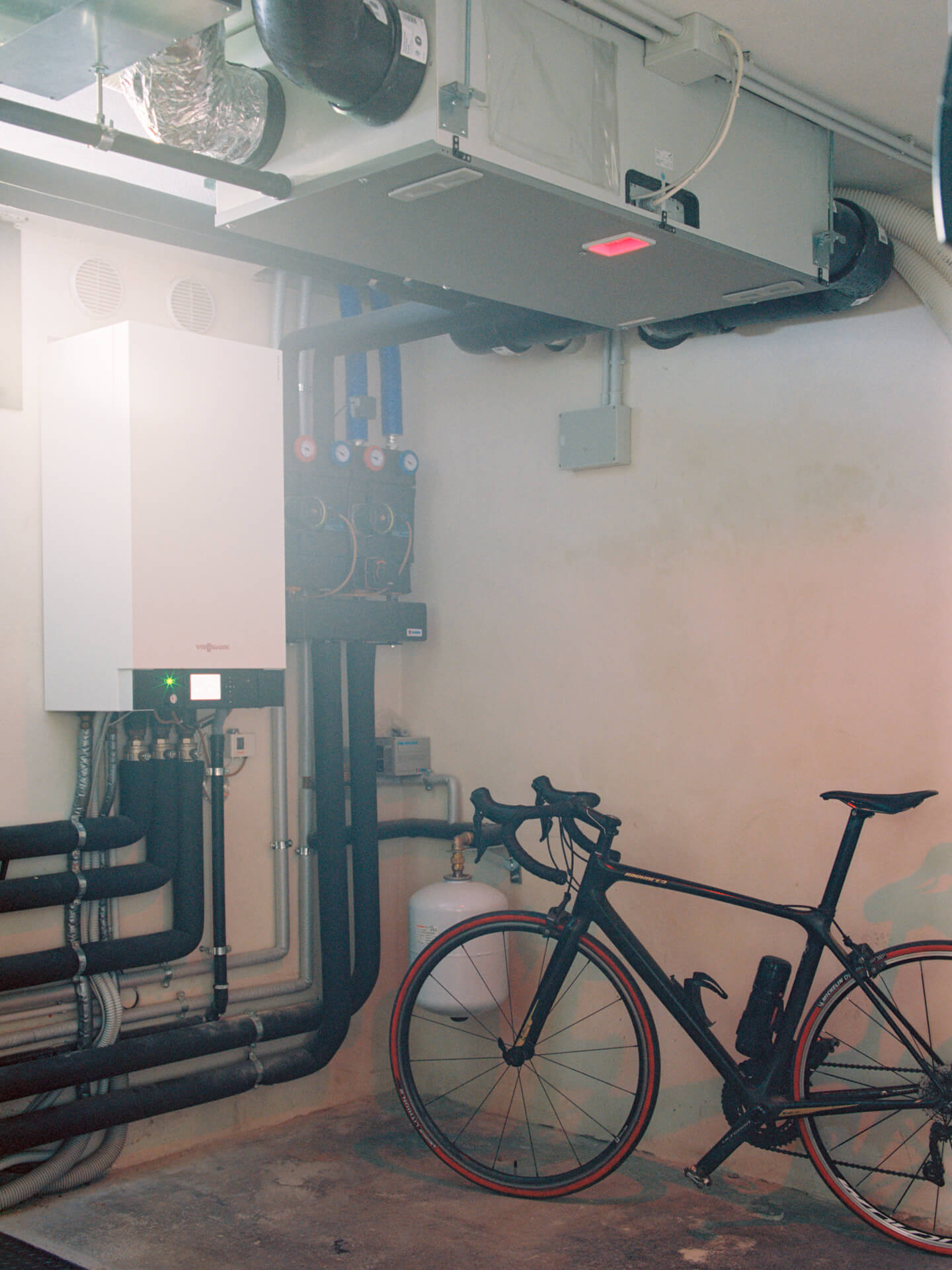 L' edificio anni 70, inizialmente fragile e totalmente inefficiente, è stato oggetto di una trasformazione profonda: un sopralzo con rifacimento della copertura, un isolamento accurato sia interno che esterno, una rimodellazione completa degli spazi interni e una particolare attenzione all’estetica complessiva. Il risultato non è la cancellazione di un passato scomodo, ma la sua evoluzione verso un presente più consapevole.